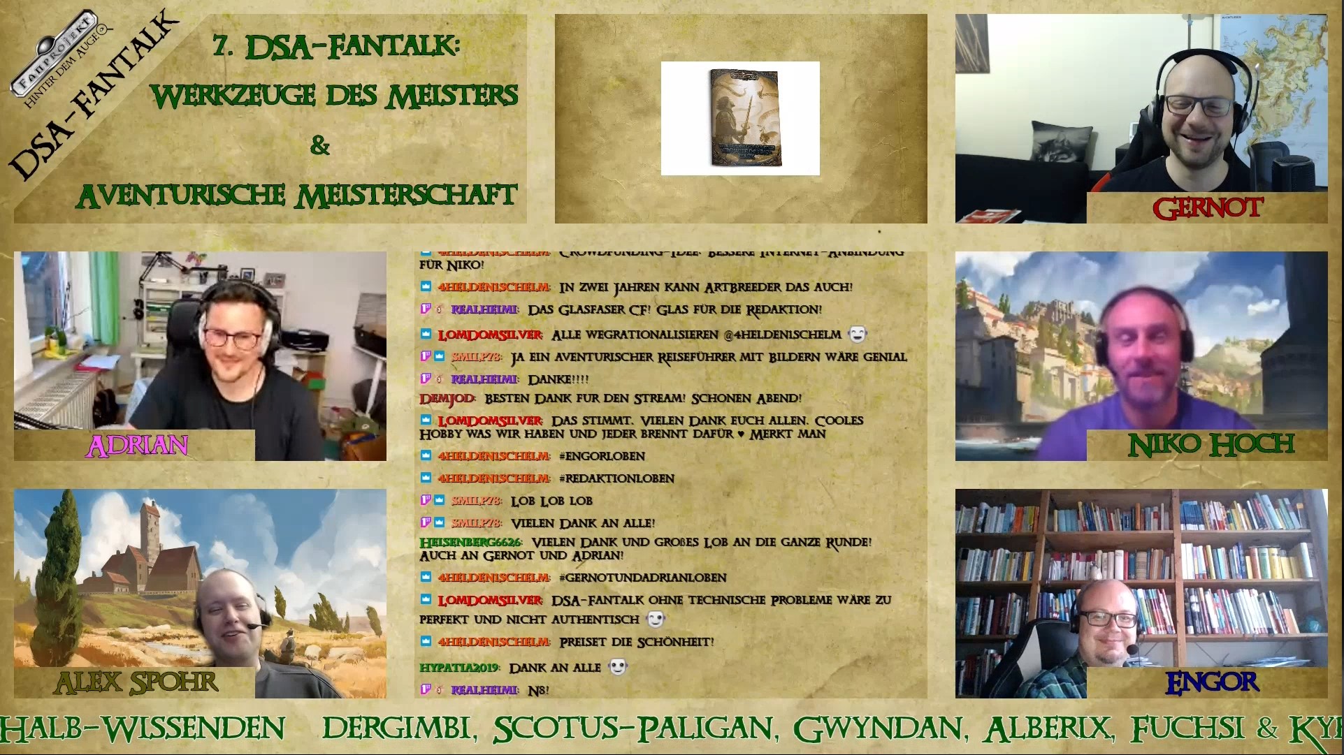 Das war der 7. DSA-Fantalk: Werkzeuge des Meisters & Aventurische Meisterschaft mit Niko Hoch, Alex Spohr & Engor! (Aufzeichnung vom 01.07.2021)