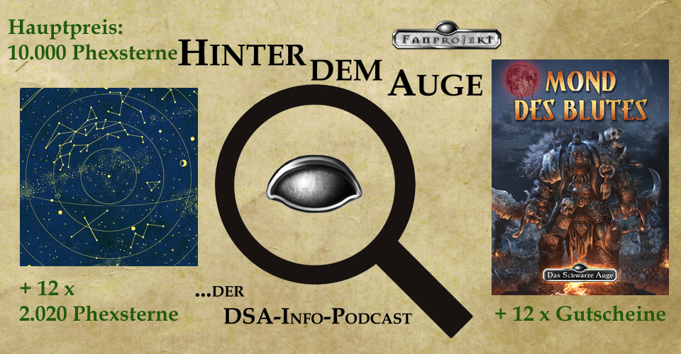 Ebenfalls verlängert sich das dazugehörige Gewinnspiel, bei dem man einen von 25(!) Preisen im Wert von rund 265 €(!) gewinnen kann! Zu gewinnen gibt es insgesamt 34.240 Phexsterne, mit denen man weitere DSA-Browserabenteuer freischalten kann und einen von 12 Gutscheinen für einen Teil der DSA-Mond des Blutes-Trilogie für Android!