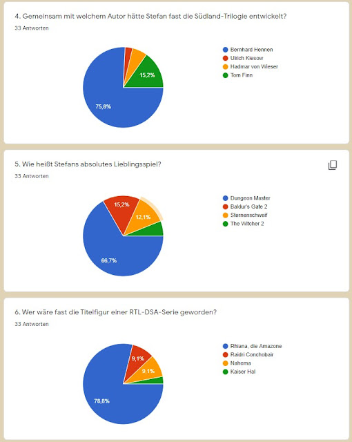 Ich hatte übrigens gar nicht gezeigt, wie die Antworten beim Gewinnspiel ausgefallen sind, dies hole ich hiermit nach (die jeweils richtige Antwort hatte auch jeweils die meisten Prozente):