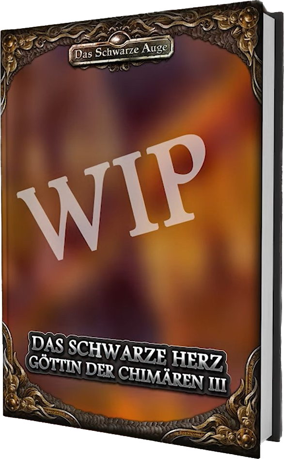 ![]() [Ulisses (RatCon 2025 - WIP)] | Göttin der Chimären III - Das Schwarze Herz | DSA5 / Abenteuer (Kampagne) [ ![]() | Früh nächstes Jahr (war: 2026 bzw. vielleicht noch 2025 im CC, sonst 2026) | grob | 28.05.2026 | CC 02/2026 | 39,95 € (unbekannt) | HC, A4, 128 Seiten | Ulisses Spiele | Ulisses (YouTube: Das große META-PLOT PANEL - Das Schwarze Auge | LIVE | RatCon 2025 - TAG 3) / Ulisses (YouTube: DAS SCHWARZE AUGE Vorschau | LIVE | RatCon 2025 - TAG 3) / Lurch und Lama (YouTube: Dreieich Con 2024 - DSA Verlags-Panel) / Ulisses (YouTube: RatCon 2024 - DSA-Vorschau) / Ulisses (YouTube: RatCon 2024 - Keynote) | 25.09.2025 | Quellen (RatCon: DSA-Vorschau, RatCon: Keynote), Schätztermin, Name (war: "Skrechu-Kampagne…") | Göttin der Chimären-Kampagne aka Skrechu-Kampagne; Kampagne zum Echsensümpfe-Metaplot im Anschluss an Die Echsensümpfe und die Anthologie; setzt keine Bücher voraus, alle Helden möglich, aventurienweit relevant, EPIC, Ziel Endzeit im Süden Aventuriens verhindern | |