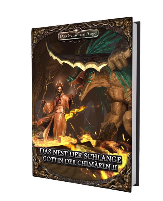 ![]() [Ulisses (RatCon 2025 - WIP)] | Göttin der Chimären II - Das Nest der Schlange | DSA5 / Abenteuer (Kampagne) [ ![]() | Zum Jahreswechsel (war: 2026 bzw. "Werden noch eine Weile auf sich warten lassen" bzw. 2025) | grob | 29.01.2026 | CC 10/2025 | 39,95 € (unbekannt) | HC, A4, 128 Seiten | Ulisses Spiele | Ulisses (YouTube: Das große META-PLOT PANEL - Das Schwarze Auge | LIVE | RatCon 2025 - TAG 3) / Ulisses (YouTube: DAS SCHWARZE AUGE Vorschau | LIVE | RatCon 2025 - TAG 3) / Ulisses (YouTube: Ulisses Spiele Keynote - mit Markus | LIVE | RatCon 2025 - TAG 2) / Lurch und Lama (YouTube: Dreieich Con 2024 - DSA Verlags-Panel) / Ulisses (YouTube: RatCon 2024 - DSA-Vorschau) / Ulisses (YouTube: RatCon 2024 - Keynote) | 25.09.2025 | Quellen (RatCon: DSA-Vorschau, RatCon: Keynote), Bild, Schätztermin, Name (war: "Skrechu-Kampagne…") | Göttin der Chimären-Kampagne aka Skrechu-Kampagne; Kampagne zum Echsensümpfe-Metaplot im Anschluss an Die Echsensümpfe und die Anthologie; setzt keine Bücher voraus, alle Helden möglich, aventurienweit relevant, EPIC, Ziel Endzeit im Süden Aventuriens verhindern; spielt vollständig auf Maraskan | |