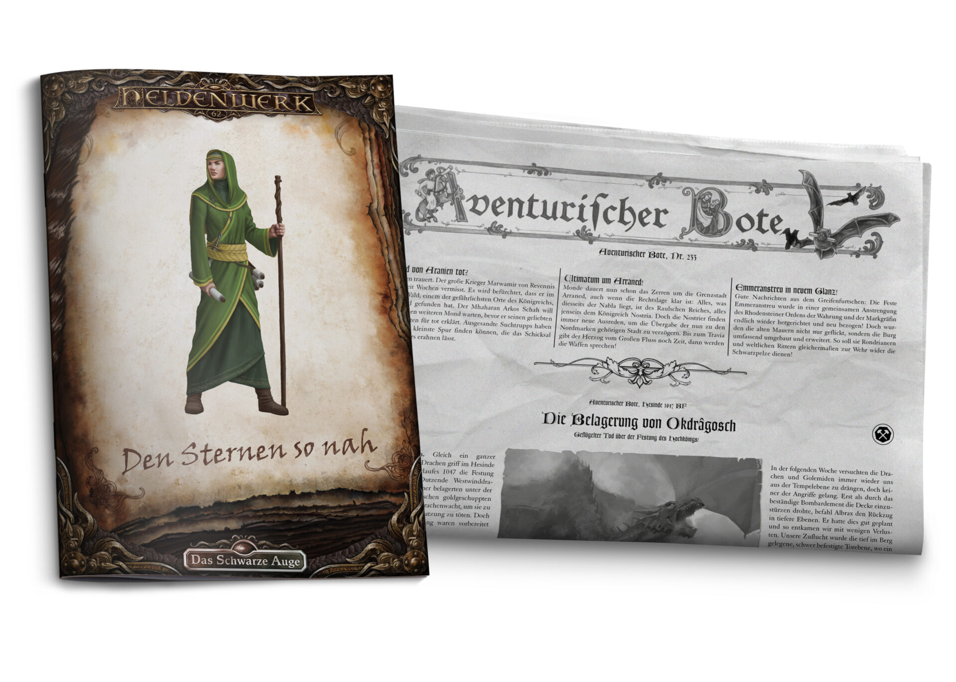 ![]() [Ulisses (F-Shop)] | Aventurischer Bote 233 + Heldenwerk #62 "Den Sternen so nah" | DSA5 / Abenteuer (Heldenwerk) [ ![]() | Okt 25 | fix | 30.10.2025 | - | 5,95 € (3,49 €) | F-Shop / | HW: 16 Seiten, Bote: 4 DIN A3 Seiten + Meisterinformationen + Beileger | Ulisses Spiele [USHW062] | Vier Helden und ein Schelm (YouTube: SchelmSchau 228: DSA 6?) / Ulisses (F-Shop) | 30.09.2025 | Quellen (SchelmSchau), Physischer Bote für Abonnenten, PDF für Abonnenten erschienen, Vorbestellen, Name, Bild, Neueintrag | PDF für Abonnenten: 19.09.2025; physischer Bote für Abonnenten: 30.09.2025 |
