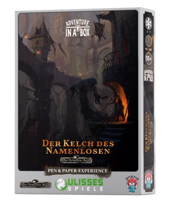 ![]() [Ulisses (RatCon 2025 - WIP)] | Adventure in a box: Das schware Auge - Der Kelch des Namenlosen | Adventure in a box / Brettspiele [ ![]() | "In der Mache" | Schätzung(!) | 30.06.2026 | CC noch offen | 34,95 € (-) | unbekannt | Ottavio (Ulisses Spiele-Imprint) | Ulisses (YouTube: Ulisses Spiele Keynote - mit Markus | LIVE | RatCon 2025 - TAG 2) / Ulisses (YouTube: RatCon 2024 - Das neue Label: Ottavio (Ulisses Imprint)) / Ulisses (YouTube: RatCon 2024 - Keynote) | 25.09.2025 | Neueintrag | Wichtiger Auftrag in den Schwarzen Landen | |