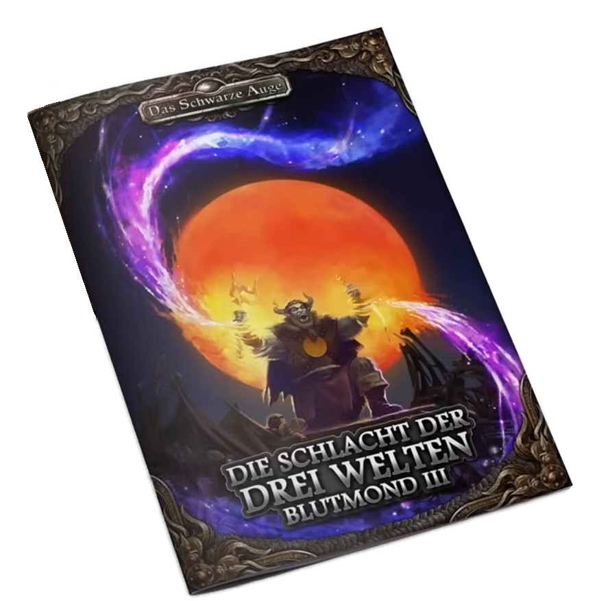 ![]() [Ulisses (RatCon 2025 - WIP)] | Blutmond III - Die Schlacht der drei Welten | DSA5 / Abenteuer (Kampagne) [ ![]() | Erst 2026, Startet mit AiA in 2025 (war: "Im Laufe der Zukunft" bzw. "Erst nach Finsterwacht, Zwergenkampagne und Echsenkampagne" bzw. "Noch keine weiteren Neuigkeiten, in Arbeit") | grob | 25.06.2026 | CC 03/2026 | 39,95 € (23,99 €) | HC, A4, 128 Seiten | Ulisses Spiele | Ulisses (YouTube: Das große META-PLOT PANEL - Das Schwarze Auge | LIVE | RatCon 2025 - TAG 3) / Ulisses (YouTube: DAS SCHWARZE AUGE Vorschau | LIVE | RatCon 2025 - TAG 3) / Ulisses-Discord (Niko auf der RPV 2025) / Der nerdige & niveauvolle Trashtalk (Folge 64: Das Schwarze Auge: Verlag vs. Community vs. Redaktion - Nikolai Hoch im Gespräch) / Lurch und Lama (YouTube: Dreieich Con 2024 - DSA Verlags-Panel) / Ulisses (Twitch: Redax Insight 11/2023) / Ulisses (YouTube: RatCon 2023 - DSA-Verlagsvorschau) / Ulisses (YouTube: Feedback-Stream zur Roadmap) / Von der CCC | 25.09.2025 | Quellen (RatCon: DSA-Vorschau, RatCon: Keynote, Infos von der RPV 2025, Der nerdige & niveauvolle Trashtalk, Dreieich Con 2024), Name (war: Ork-Kampagne) | Blutmond-Kampagne aka Ork-Kampagne - "Schwester-Kampagne zu Kaiserstern"; Kampagne auf Seiten der Weidener & Greifenfurter - "Die Orks werden die Kriegstrommeln erklingen lassen"; Inhaltlich greift die Kampagne offene Handlungsstränge auf, die Bernhard Hennen beim 3. Orkensturm gelegt hat. Es wird um den Aikar gehen (was jetzt ja nicht das riesen Geheimnis ist) und eventuell auch mit den Artefakten zu tun haben, die er mit der Zeit angesammelt hat | |