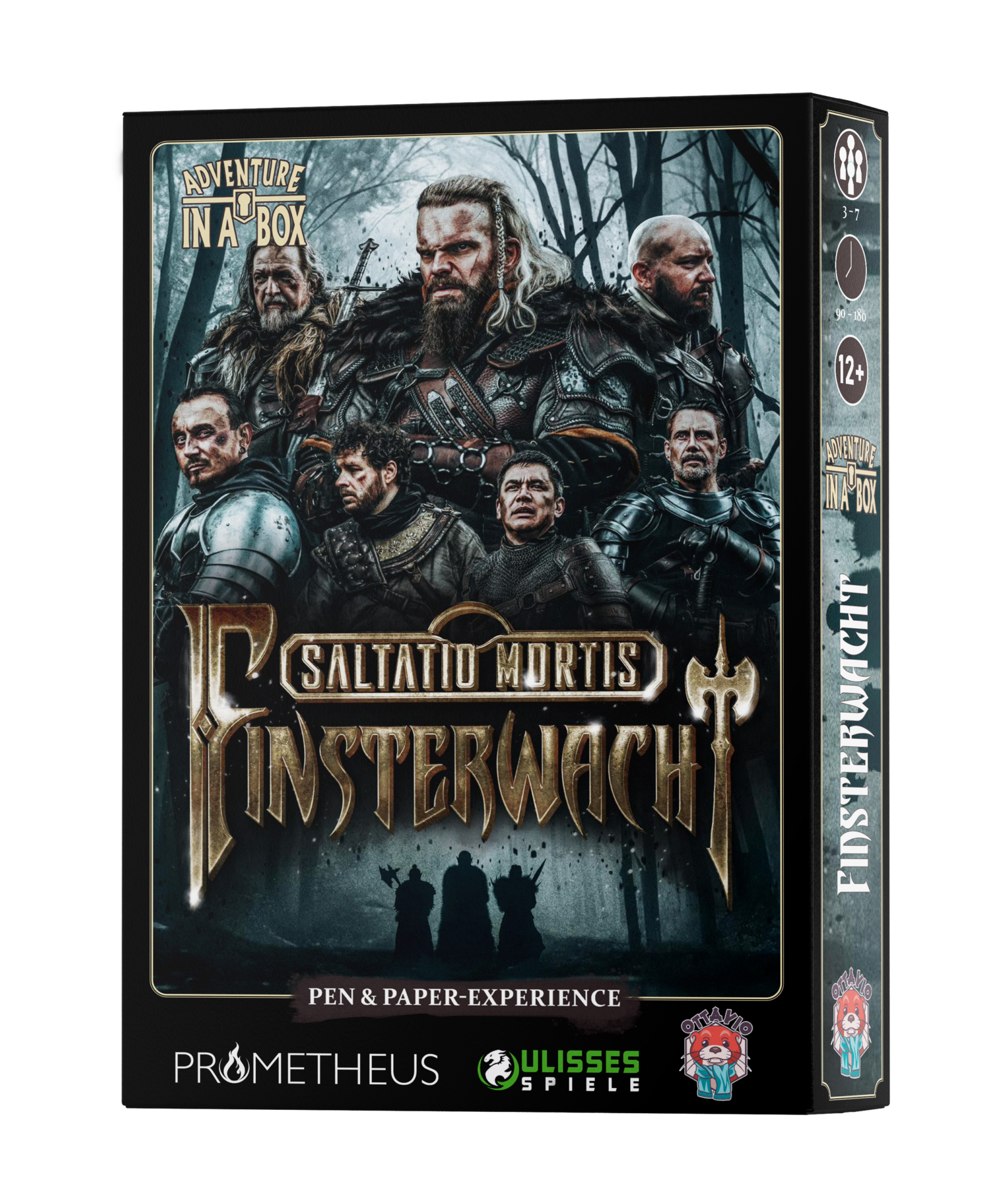 ![]() [Ulisses (F-Shop)] | Adventure in a box: Saltatio Mortis - Finsterwacht | Adventure in a box / Brettspiele [ ![]() | 11/2025 - Pre-Release 23.10.2025 (SPIEL Essen 2025) (war: 09/2025 bzw. 05/2025 bzw. 03/2025 bzw. Nach der Preview-Ausgabe (inkl. Anpassungen)) | grob | 13.11.2025 | CC 09/2025 | 34,95 € (-) | F-Shop / | Box mit Heften, 132 Seiten, Spielzeit ca. 10-20 h; Inhalt: 1 Faltblatt „Lies mich zuerst!“, 7 gefaltete Heldenbögen, 50 Karten mit Heldenentscheidungen, 1 Regelübersicht, 1 Heft „Der Prolog“, 1 Heft „Das Abenteuer“, 1 Stanzbogen, 1 gefalteter Bodenplan, 1 vollseitiges Handout, 10 achtseitige Würfel | Ottavio (Ulisses Spiele-Imprint) [US91024] | Ottavio (Regelheft-Download) / Ulisses (YouTube: OTTAVIO Vorschau | LIVE | RatCon 2025 - TAG 3) / Ulisses (YouTube: Ulisses Spiele Keynote - mit Markus | LIVE | RatCon 2025 - TAG 2) / Der nerdige & niveauvolle Trashtalk (SpinOff-Folge 66 - Ottavio: Kann Ulisses neue Zielgruppen erreichen? (feat. Engors Dereblick)) / SteamTinkerer (YouTube: Das Schwarze Auge & Adventure in a Box: Im Gespräch mit Niko und Johannes aus der DSA-Redaktion) / Ulisses (YouTube: Adventure in a Box Finsterwacht - Unboxing der SPIEL 2024 Preview Ausgabe) / Ulisses (YouTube: RatCon 2024 - DSA-Vorschau) / Ulisses (YouTube: RatCon 2024 - Das neue Label: Ottavio (Ulisses Imprint)) / Ulisses (YouTube: RatCon 2024 - Keynote) | 25.09.2025 | Quellen (Regelheft-PDF-Download, RatCon: Ottavio-VorschauRatCon: Keynote, Der nerdige & niveauvolle Trashtalk, SteamTinkerer), CC, Termin (war: 09/2025), Vorbestellen, Bild, Name (war: Adventure in a box: Finsterwacht) | Non-Feedback-Produkt ohne PDF; Nach der Story des Finsterwacht-Videos; Komplettpaket (inkl. gerasterer Spielplan, Spielmarkern, Stickerbogen, Tutorial á Heldenwerk-Format und Hauptabenteuer á 2 Heldenwerke - out of the box spielbar); 3-8 Spieler ab 10 Jahren; Charakterbögen und Stickerbögen auch als Download (für 2. Spiel) |