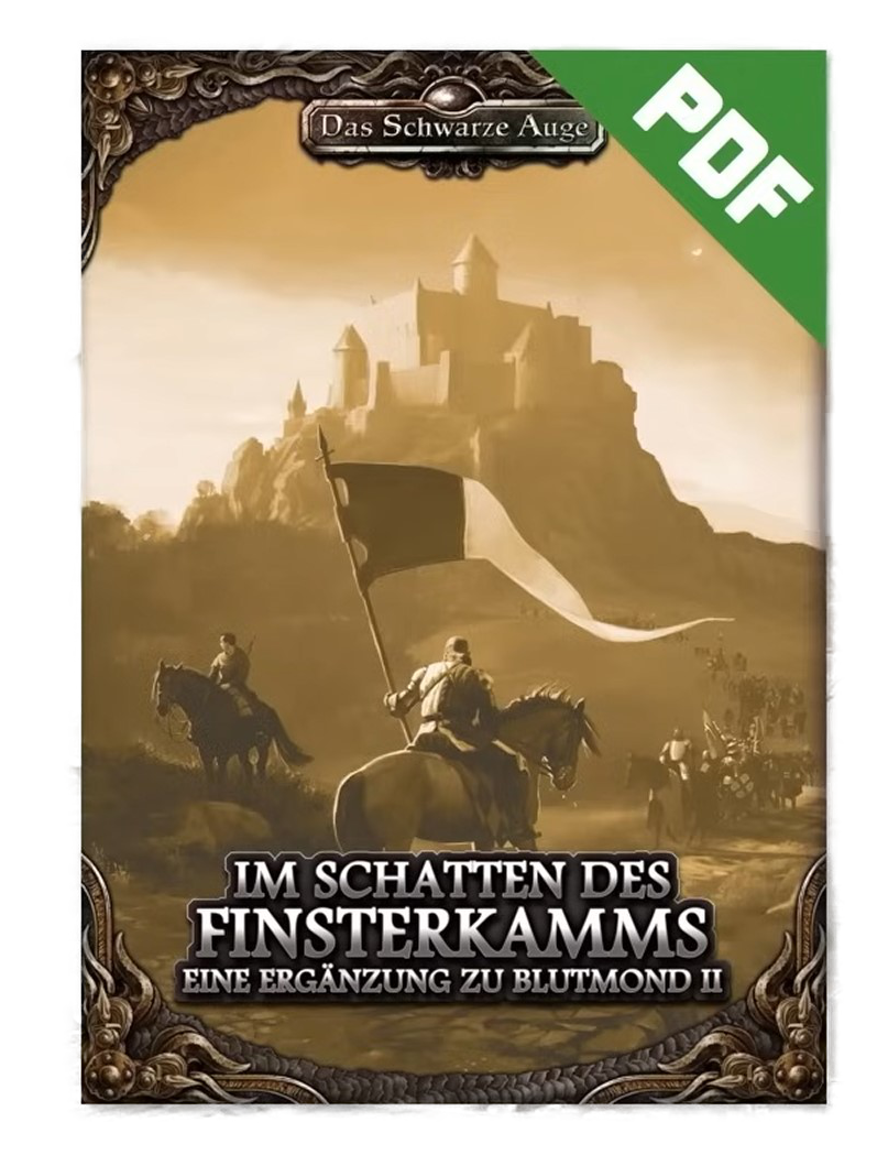 ![]() [Ulisses (RatCon 2025 - WIP)] | Im Schatten des Finsterkamms (Eine Ergänzung zu Blutmond II; PDF) | DSA5 / Abenteuer (Kampagne) [ ![]() | 2025 | grob | 26.03.2026 | CC 01/2026 | unbekannt (unbekannt) | unbekannt | Ulisses Spiele | Ulisses (YouTube: Das große META-PLOT PANEL - Das Schwarze Auge | LIVE | RatCon 2025 - TAG 3) / Ulisses (YouTube: DAS SCHWARZE AUGE Vorschau | LIVE | RatCon 2025 - TAG 3) | 25.09.2025 | Neueintrag | Blutmond-Kampagne aka Ork-Kampagne - "Schwester-Kampagne zu Kaiserstern" | |